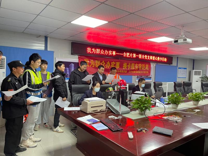 小卡片承载大民生,按照省人社厅统一部署,合肥市已于2021年4月28日起发行第三代社会保障卡。为方便公司员工换卡升级,pg电子 公司党支部统一组织,联合工行雷锋储蓄支部为广大员工和工地建设者提供免费上门换卡服务。通过线上采集、快速申请、即时制卡、现场激活,省去了广大员工和工地建设者办理相关业务的“跑腿”时间。