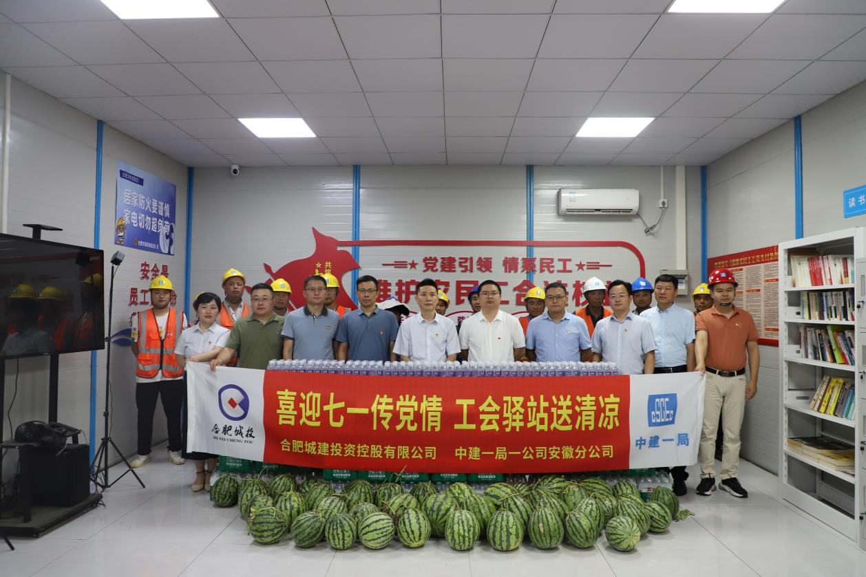 广大党员首先来到高新区首个在建项目设立的“工会驿站”为项目建设者送去党组织的关怀。pg电子 公司和项目领导们详细询问了项目进展及各项安全措施落实情况,要求项目负责人一定要做好现场劳动保护和防暑降温工作,合理安排施工时间,切实保障施工人员的身心健康。