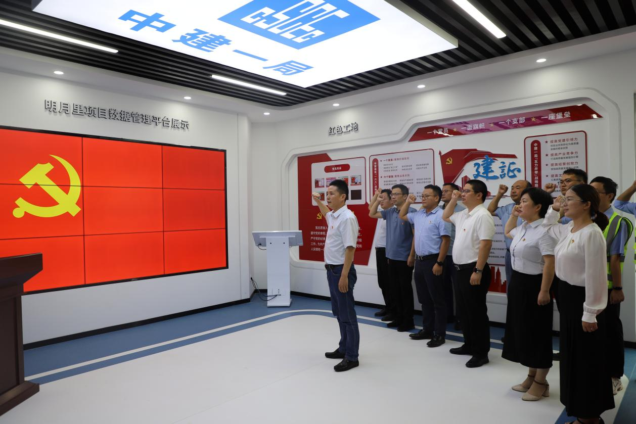 在pg电子 公司党支部书记、董事长毛雷同志带领下,在明月里项目智慧工地大厅中,全体党员面向鲜红党旗,高举右拳,重温入党誓词,重重许下铮铮誓言。庄严的誓词,一字一句,铿锵有力,激荡在项目建设现场,更激荡在每一名项目建设者的心中,时刻警醒着同志们检视初心、坚定信念、凝聚力量、奋勇拼搏、砥砺前行。