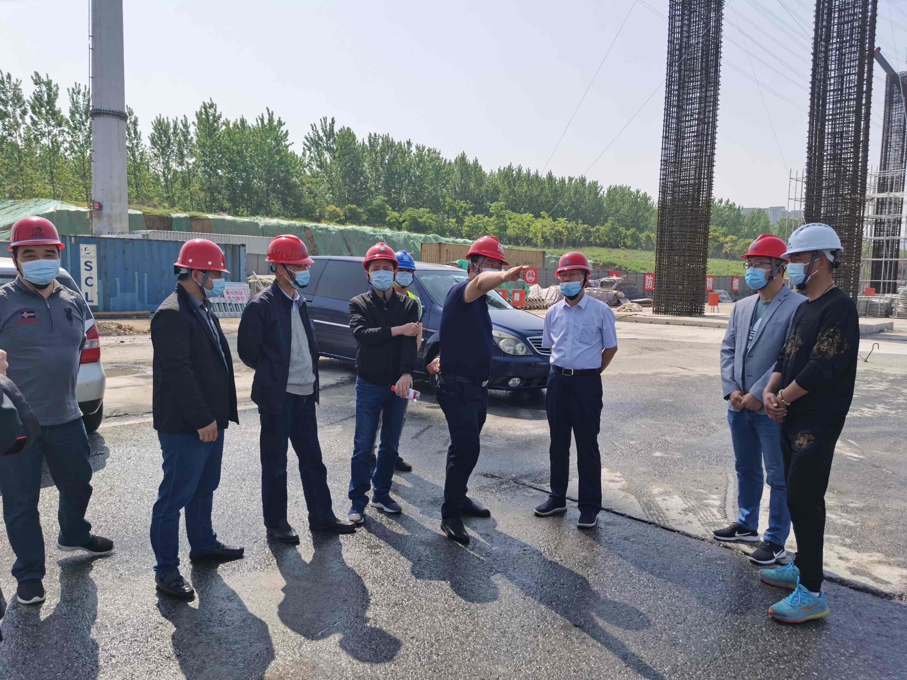 4月21日上午,建投集团党委书记、董事长李宏卓赴宿松路项目现场调研,督导疫情防控和安全生产工作。建投集团办公室主任范红金、pg电子 公司董事长蒋业超、总经理、副总经理毛雷陪同。