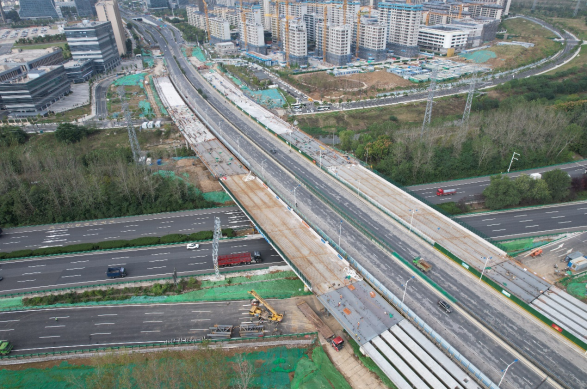 引领下,项目参建团队克服异常梅雨期十五里河防汛、220kv高压走廊下高风险施工、暑期高温天气施工、高速保通施工标准高协调难等实际困难,历时6个月,实现辅道桥主体结构实现贯通。
